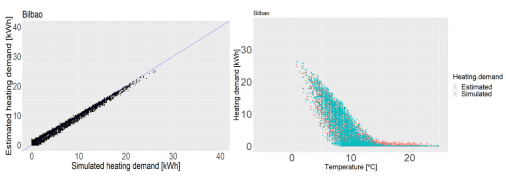 Markel modeló un edificio residencial en EnergyPlus y obtuvo la carga térmica de calefacción en base horaria. Buscábamos identificar la sensibilidad climática de la carga ante las condiciones exteriores, léase Temperatura Ambiental y Radiación Solar (Mikel Lumbreras concluyó en un trabajo previo que estas eran las variables relevantes). Y le pedimos que desarrollase modelos autoregresivos (ARX).