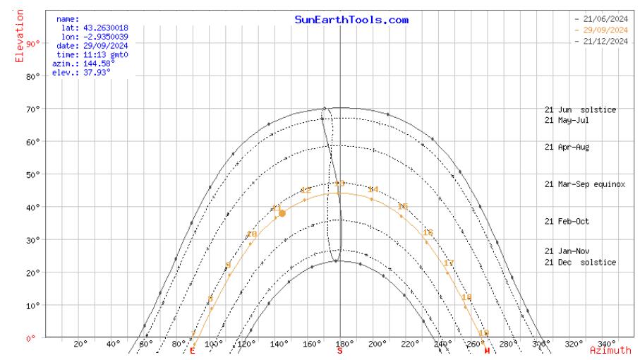 Solar chart for Bilbao (43ºN), source: sunearthtools.com