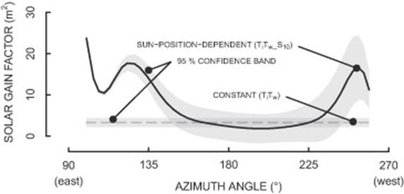Azimuth-dependent solar gain factor. Source: Rasmussen et al. CC BY 4.0