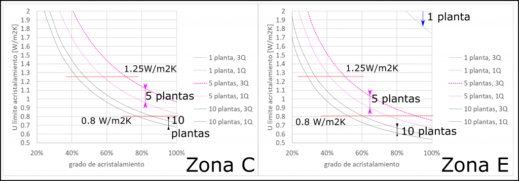 - Si tomamos otra zona climática con menor severidad de invierno, las limitaciones no son tan relevantes. Sólo comienzan a aparecer límites técnicos en edificios que sobrepasan las 10 plantas, y niveles de acristalamiento del 80%. En cualquier caso, sí es cierto que hay que emplear productos que ahora consideramos “premium” en muchos de los casos.