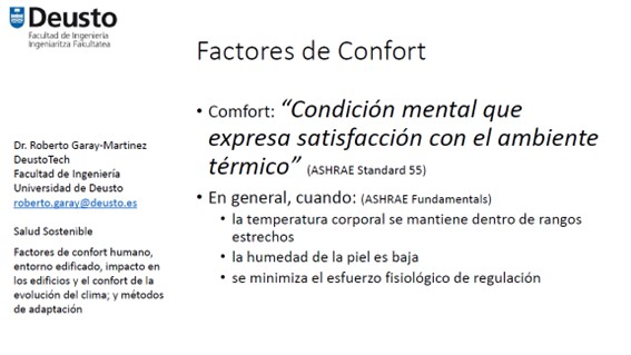 - Ponencia: Factores de confort humano y consumo energético en los edificios. Impacto de la evolución del clima y métodos de adaptación