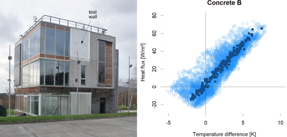 My colleague Beñat Arregi worked for some time over some concrete walls within project ECOBINDER. These were tested in KUBIK some years ago. By itself, the heat transfer of walls is quite simple, with linear relations associated to indoor-outdoor temperature differences. But there are very relevant dynamics involved, associated with thermal storage, the impact of solar radiation, and variations in boundary conditions.