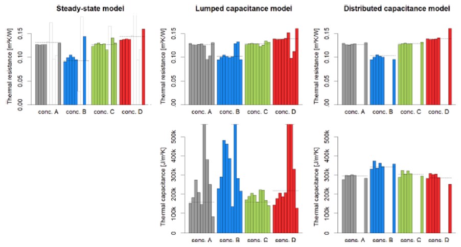 2. Identifiability. Identifying thermal resistance can be performed using one month of data or so. Provided that this data is from winter months. If thermal capacity is relevant, the distributed capacity model delivered consistent outcomes quite independently of the period.