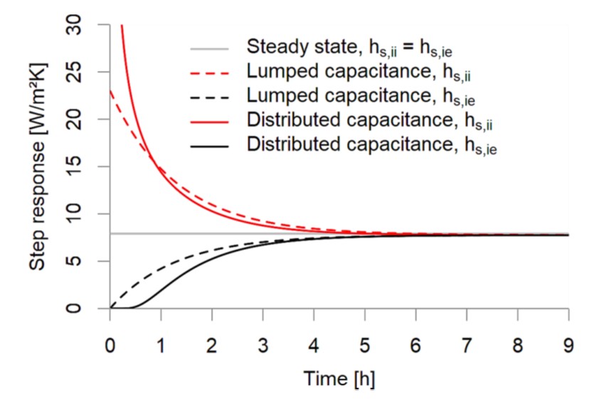 As a general conclusion, I believe that distributed capacitance models seem to be very useful here. But that using them is only possible if the modeled system is homogeneous. This issue may potentially be overcome if analytical solutions for more complex wall systems are found and tested. But there are still many open questions to answer.