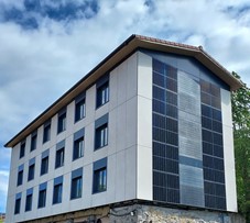 • Instalación solar térmica y fotovoltaica integrada en rehabilitación de envolvente en un edificio residencial en Durango. Parte del proyecto RENOZEB. Hace un año estaba en pleno montaje. Hoy está operativa.