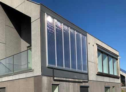 • Reforma del edificio K2 en KUBIK. Reemplazamos el colector solar de aire que se experimentó en su configuración original por un sistema basado en agua e integrado igualmente en un muro cortina. Y su integración en una red térmica que da servicio a ambos edificios. La fachada se diseñó conjuntamente con la empresa UXAMA, en el marco del proyecto IN-SARE.